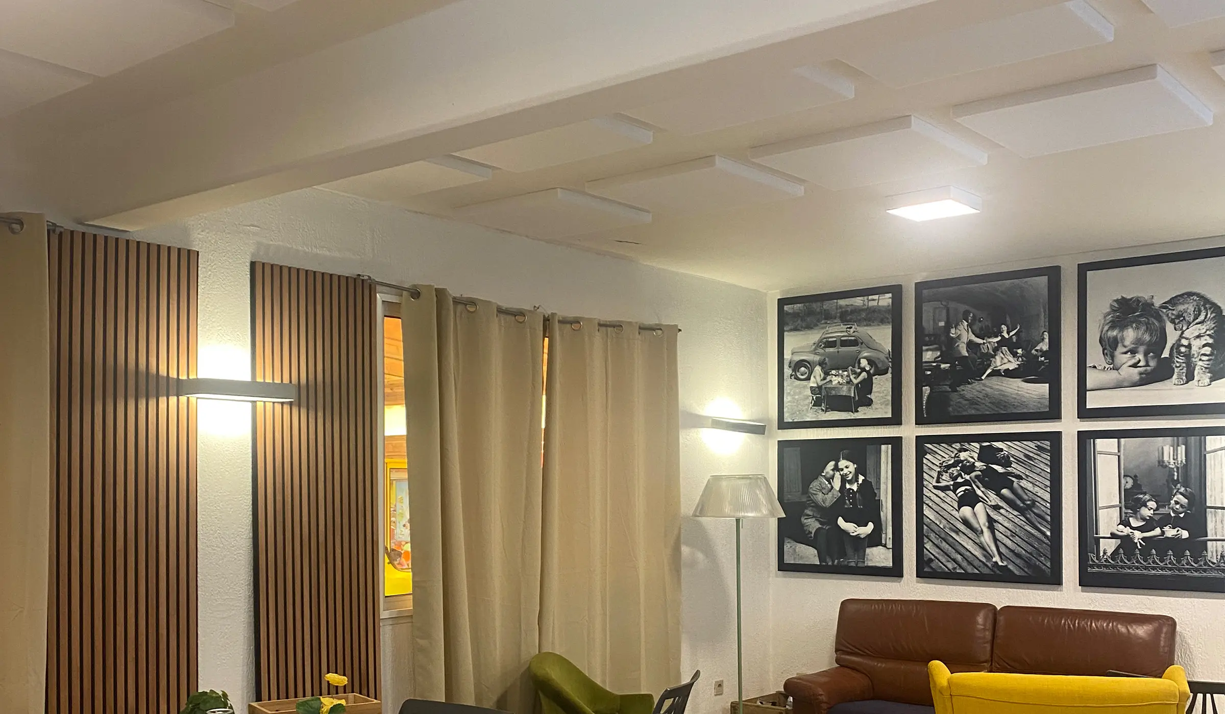 Grâce à ces mesures, nous avons pu proposer un traitement acoustique adapté, tout en l'intégrant de manière élégante à la salle comme avec les tablofotos.