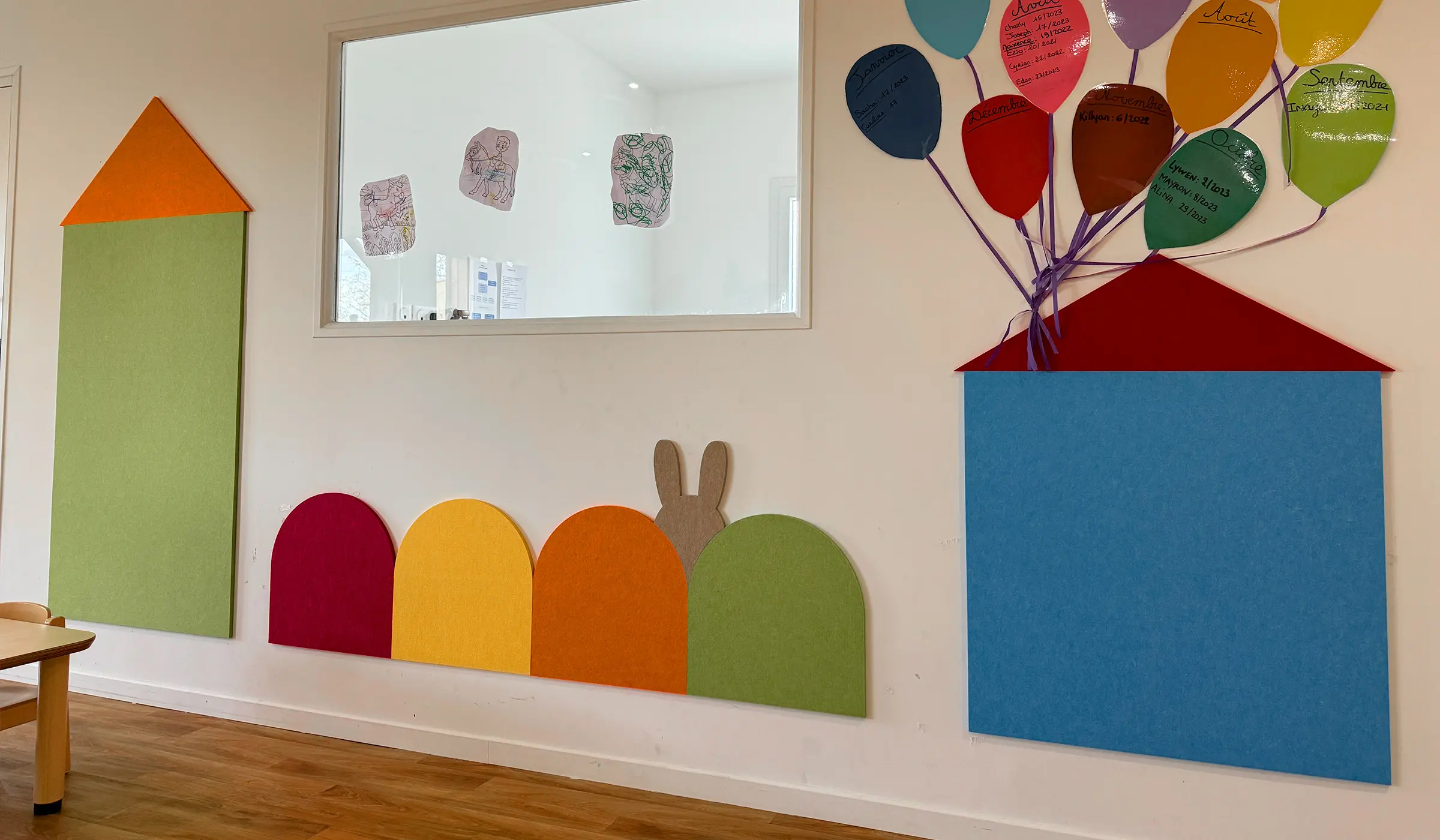 Nous en avons profité pour créer un cadre agréable et coloré dans la salle d’éveil pour le plus grand plaisir des enfants et du personnel encadrant.